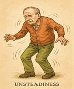 The balance disordered patient presents to the doctor with a mix of vestibular and non-vestibular symptoms. The vestibular symptoms are head spinning or vertigo which may be internal (spinning sensation inside the head with the surroundings stable) or external (spinning / rotation of the surrounding visuals with the head stable), dizziness (i.e., a distorted feeling of the surrounding space, a feeling as if the self is not anchored to the physical surroundings) or unsteadiness or imbalance when the patient feels secure only when holding on to some physical support.