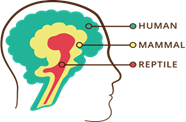 • Lower brainstem (Ponto-medullary level): Reflexive control of gaze via the vestibulo-ocular reflex (VOR) and posture via the vestibulo-spinal reflex (VSR). These pontomedullary reflexes were made for reptiles to sense and respond appropriately to any danger