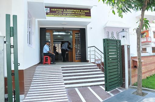 Dr. Anirban Biswas is available daily from 9:30 am to 12 noon and in the afternoon from 4 pm to 6 pm by prior appointment for a consultation on the treatment of neurotological disorders ( i.e., vertigo and deafness). This clinic also has a state-of-the-art setup for dispensing sophisticated high-end hearing aids. All requisite arrangements for dispensing high-end digital hearing aids like REAL EAR INSERTION GAIN apparatus, HEARING AID ANALYSERS special music room with a 5.1 top-end music system for aided trials ( i.e., hearing tests for sounds and speech with the patient wearing hearing aids) on patients in different simulated sound fields is available in this clinic. It has the latest diagnostic equipments like Interacoustics Videonystagmography apparatus VO425, Otometrics Chartr200ENG / VNG as well as the SYNAPSYS Videonystagmograph , VNG machine made by NeuroEquilibrium all complete with setup for oculomotor tests which is a very important part of vestibulometry for evaluation of central balance disorders. Facilities for air caloric stimulation (Aircalof Otometrics) for patients with perforation in the ear drum as well as for those patients who dislike water irrigation in the ears, in addition to the conventional water caloric stimulation are available in this clinic. Other tests for evaluation of Vestibular function like Vestibular Evoked Myogenic Potentials (both ocular and cervical VEMP) of Otomertics Chartr EP 200, Interacoustics Eclipse Evoked Potential System as well as that of the Labat Epic Plus system, Video Head Impulse Test (VHIT) from Otometrics and Synapsys and the Subjective Visual Vertical test from Synapsys and NeuroEquilibrium Systems and the Computerised Dynamic Visual Acuity (DVA), Stabilometry (static posturography) tests are available in Vertigo and Deafness Clinic. Other tests of the vestibular system available here are Craniocorpography (CCG) and Electronystagmography (ENG). For audiological evaluation it has all possible latest systems of different internationally acclaimed manufacturers like BERA (Interacoustics, Otometrics, Labat and RMS), ASSR (Interacoustics, Otometrics, and Labat), DPOAE, and TEOAE (Interacoustics, Otometrics Labat, and Otodynamics), Pure Tone Audiometers (Alps, Madsen Astera2, Siemens Unity system), Impedance audiometers (Interacoustics, Otometrics and Maico), ABRIS automated BERA, Bone conducted BERA, Tone Evoked BERA for BERA threshold at different frequencies, CHIRP BERA for more sensitive BERA recording (Interacoustics), Free field audionetery, and Visual response audiometry (with the Pharatek VRA system), etc.